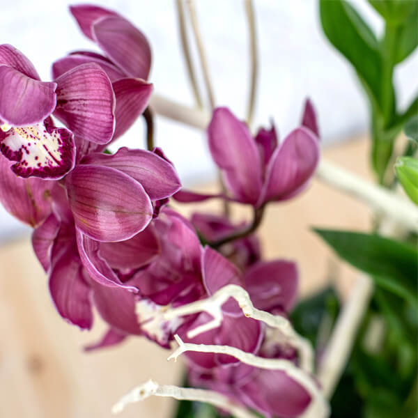 הסידור מכיל סחלבים, ענפי מצ׳ומטה, ורדים, ורוניקה ושושן צחור מגיע בכלי קרמיקה